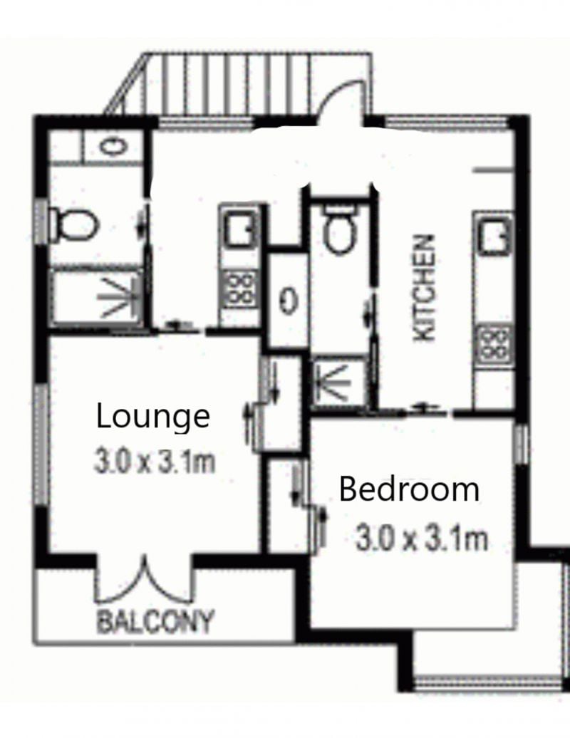 - One bedroom, one loungeroom, 2 kitchens & 2 bathrooms