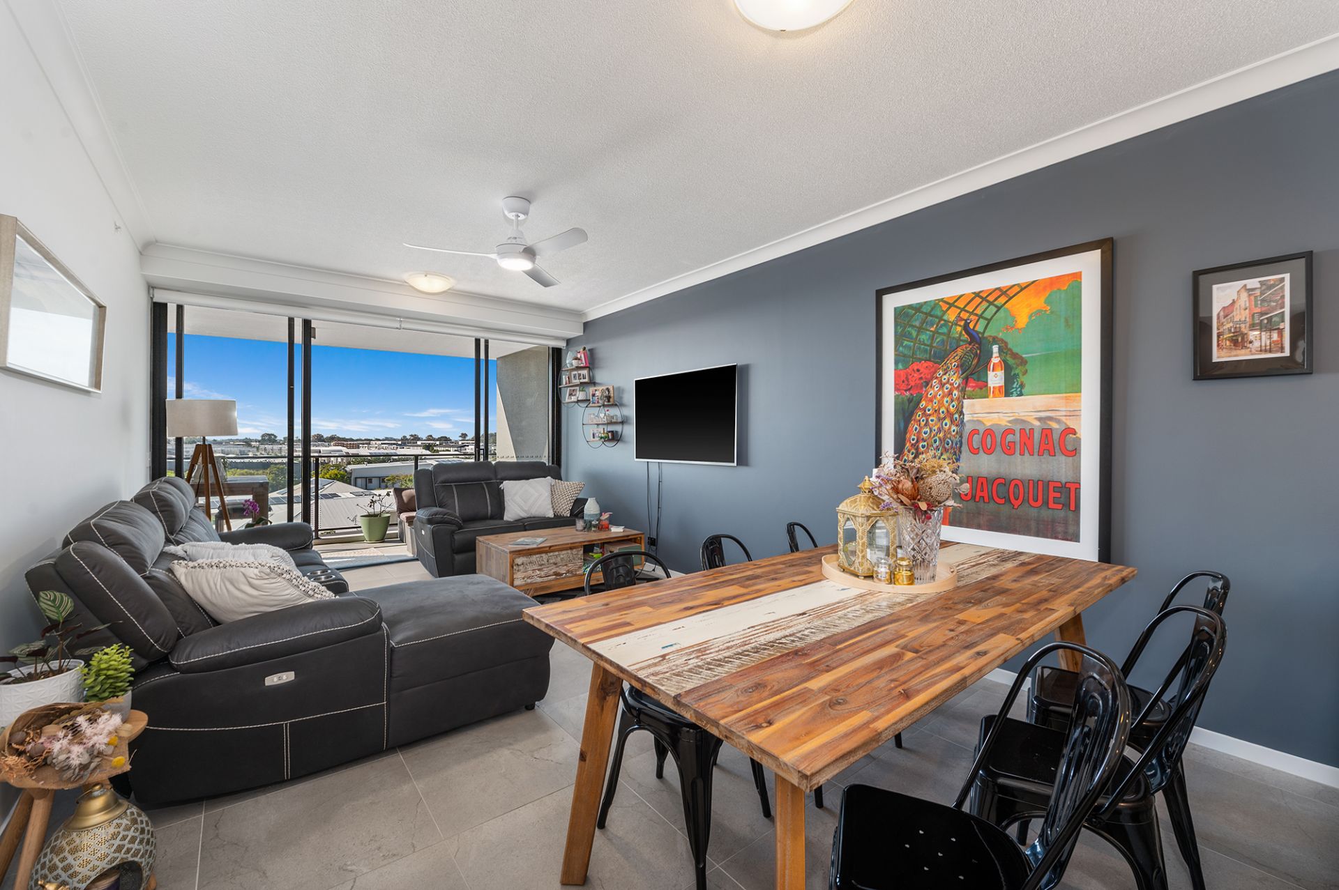 Living areas flow onto sunny balcony and water views. Kitchen boasts an island stone bench with european appliances & dishwasher.