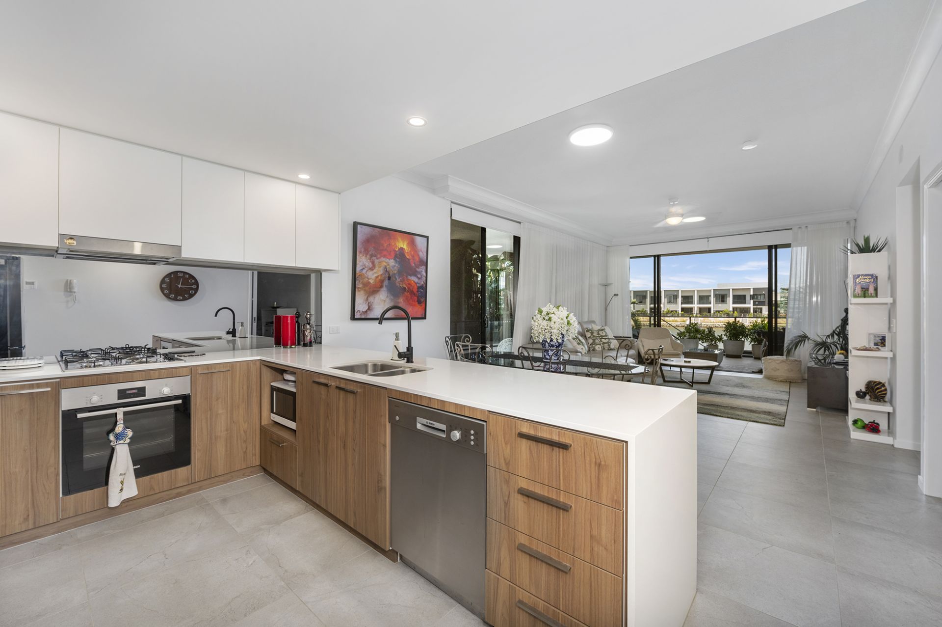 House-style Luxury living exudes from this huge ground-floor apartment with high ceilings located on the most easterly side of the building facing a quiet retirement village. This apartment sides on a garden buffering adjoining buildings and cannot be built out.