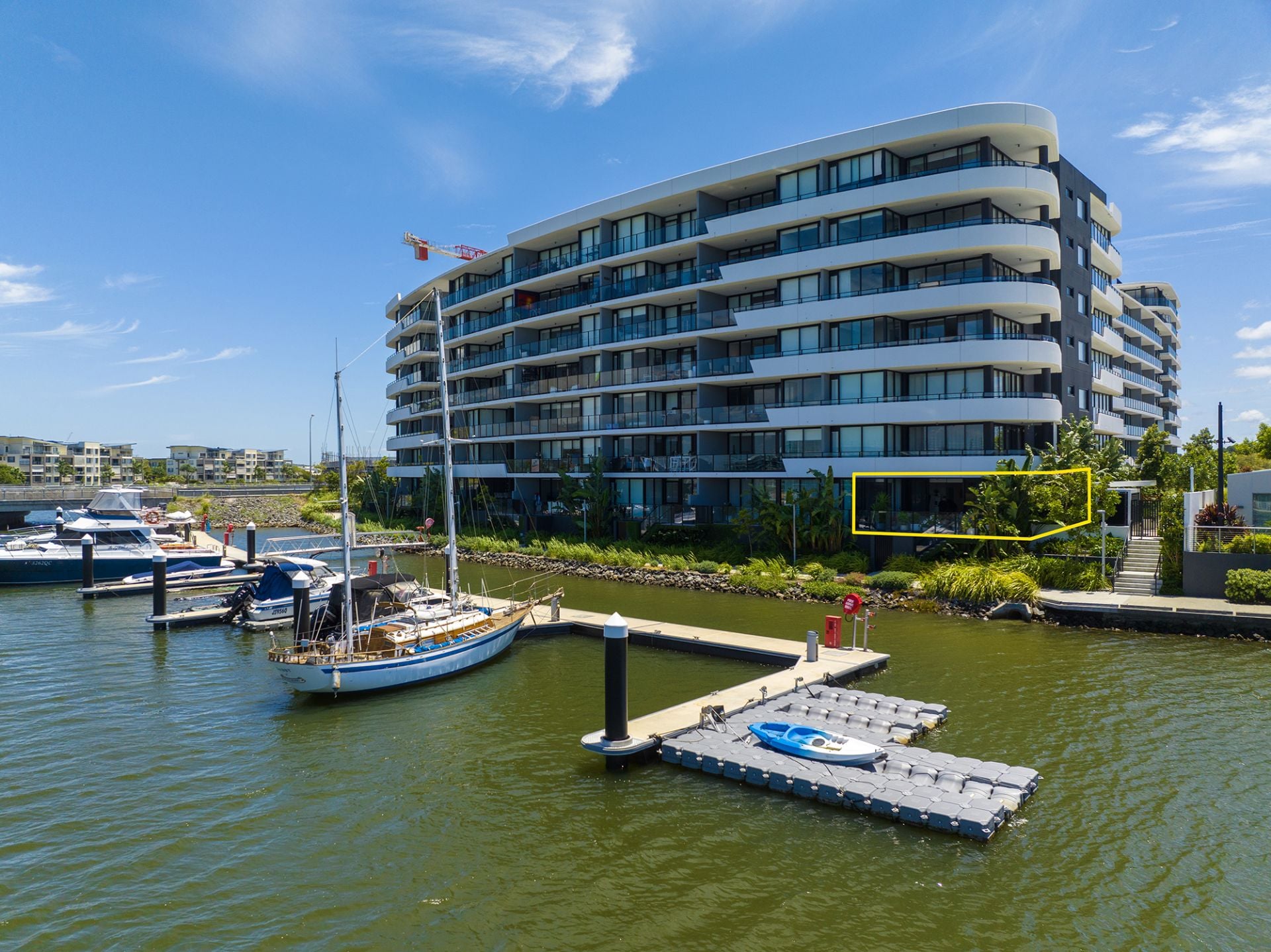 One of Hope Islands' Largest outdoor ground floor apartment of 160 m2 with a 12 metre Marina- Bridge Free access