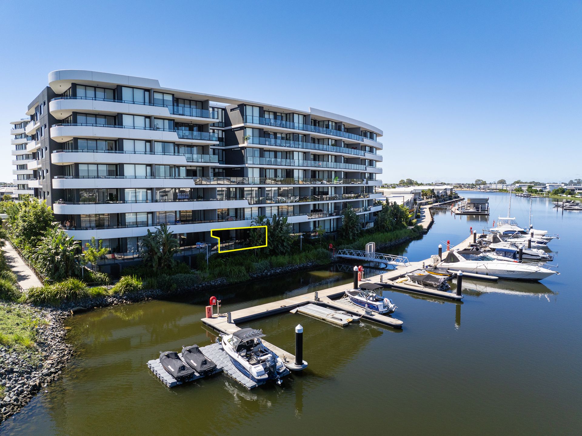 Step into this exclusive ground-floor apartment offering a lifestyle of sophistication and convenience in a highly sought-after waterfront location. Perfect ground floor apartment with lovely views of the canal and surrounds.