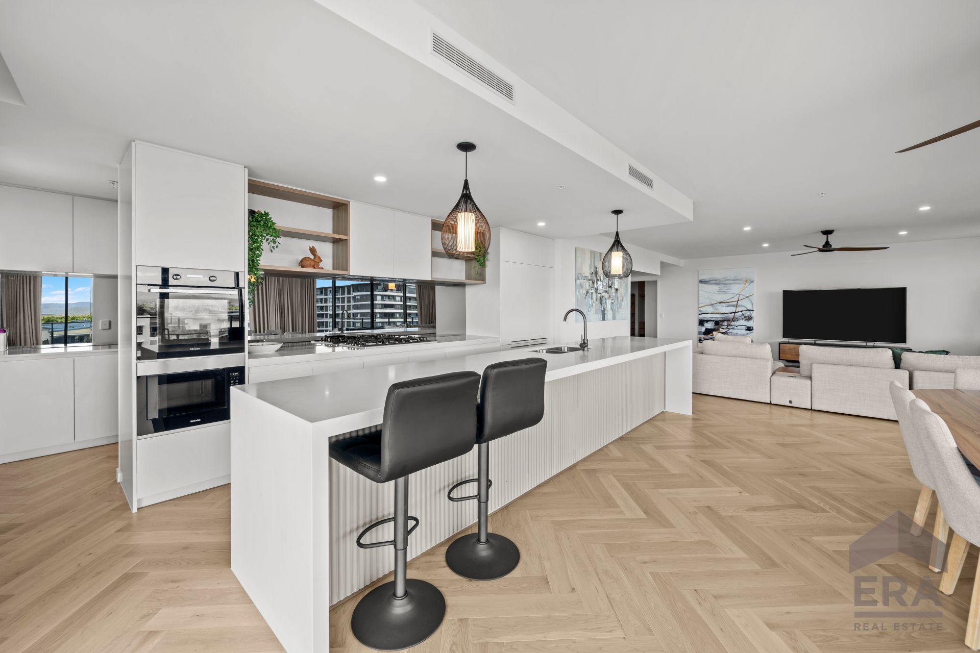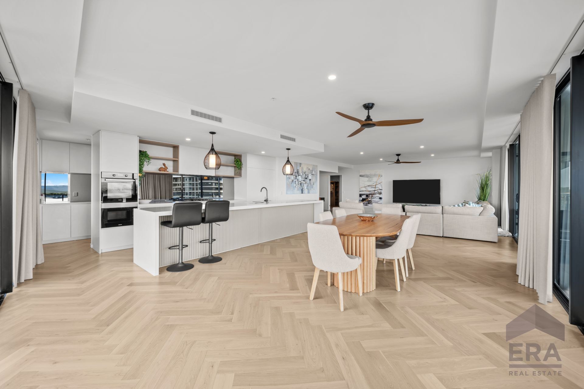 Thoughtfully designed over 280m2, this immaculate Level-6 residence combines modern coastal architecture with generous proportions and a seamless indoor outdoor flow. Floor-to-ceiling glass brings the water and sky into the home, while the expansive balcony curves around the living and dining zones, creating an entertainer's paradise with multiple outdoor spaces to relax and take in the scenery.