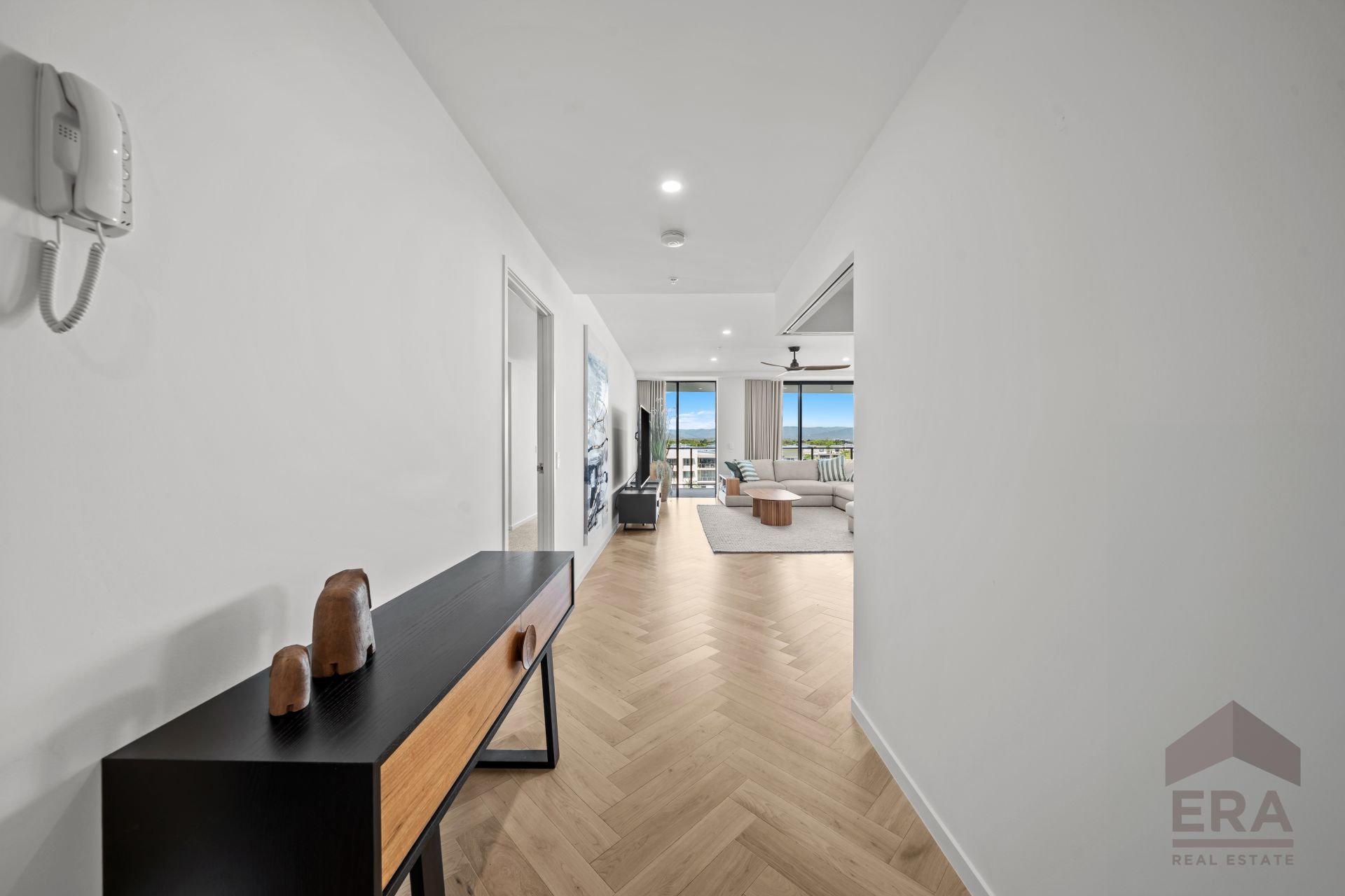 Premium "Skyhome" upgrades elevate the interiors, including an integrated fridge, gas cooktop, and bespoke timber-engineered herringbone flooring-individually laid for a refined, boutique finish. A dedicated study, abundant storage, and a lockable storage cage add practicality, supported by a 7-year home warranty and the confidence of quality construction by a renowned builder/developer.
